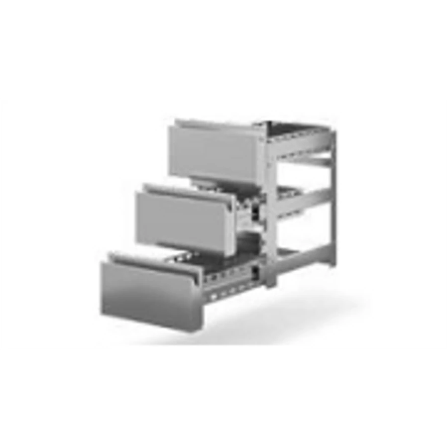 A szett 3 db 1/3-os méretű fiókot tartalmaz, és kiváló kiegészítő eleme az olasz gyártmányú, professzionális nagykonyhai Dalmec hűtött munkaasztaloknak és Dalmec fagyasztós munkaasztaloknak.