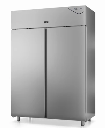 A Dalmec olasz gyártmányú, professzionális nagykonyhai, 1400 literes, GN 2/1 fagyasztószekrény kívül belül rozsdamentes acél borítással rendelkezik, és felül elhelyezett, monobloc rendszerű hűtőaggregát és elpárologtató is jellemzi.