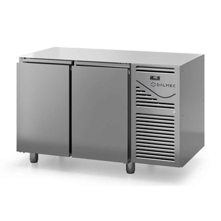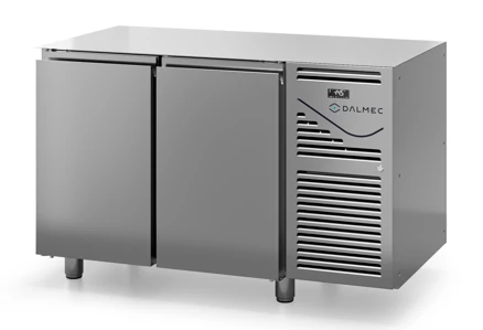 A Dalmec olasz gyártmányú, professzionális nagykonyhai, 231 literes,2 ajtós, GN 1/1-es ráccsal és polccal rendelkező hűtött munkaasztal kívül belül rozsdamentes acél borítással rendelkezik és trópusi kivitelű, könnyen szerelhető, monobloc rendszerű aggregáttal működik, nincs hátsó felhajtás.
