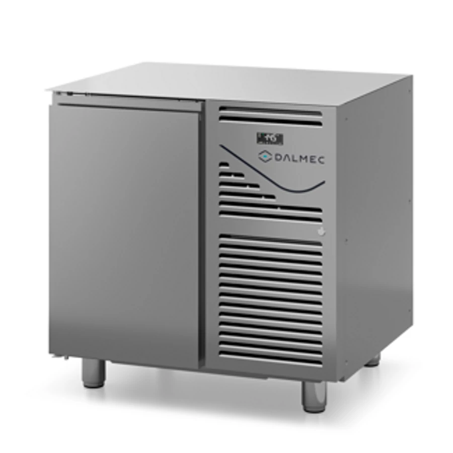 A Dalmec olasz gyártmányú, professzionális nagykonyhai, 150 literes,1 ajtós, GN 1/1-es ráccsal és polccal rendelkező hűtött munkaasztal kívül belül rozsdamentes acél borítással rendelkezik és trópusi kivitelű, könnyen szerelhető, monobloc rendszerű aggregáttal működik, nincs hátsó felhajtás.